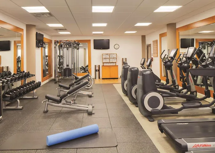 Comfort Suites is one of the best options, offering an outdoor swimming pool, a golf course and a gym on site.
